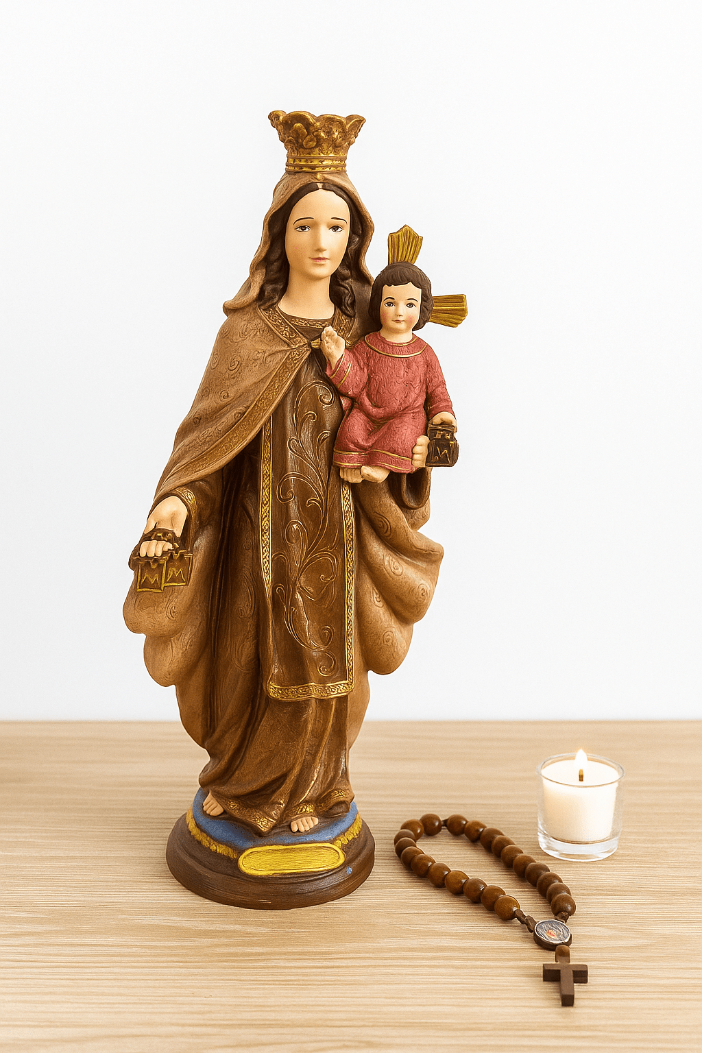 Virgen del Carmen de 40 cm Hecha a Mano: Belleza y Devoción Artesanal